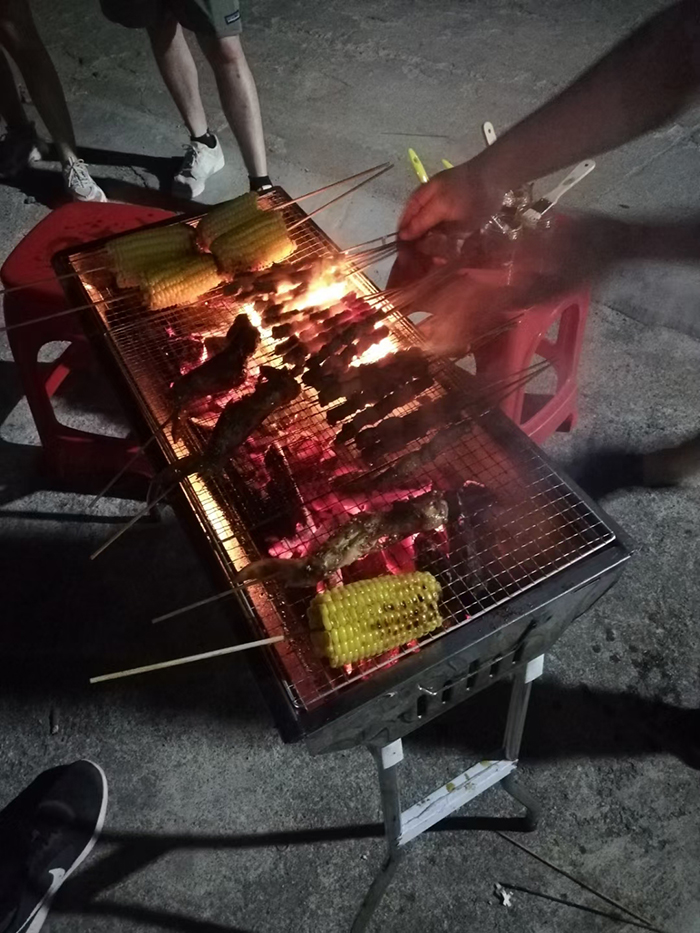 傍晚,我們回到民宿地,分享燒烤,啊,那香啊,鉆入鼻子,讓人神清氣爽,蕩氣回腸;那香啊,調(diào)皮地觸摸了一張張笑臉,讓人感受到生活的特殊香味。