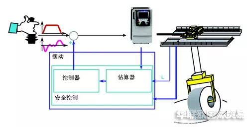 防搖擺控制是利用鐘擺原理,通過修改發(fā)給電氣控制系統(tǒng)的速度命令信號而連續(xù)限制擺動。通過檢查吊鉤的起升高度來計算擺動的角度,然后通過給定的加速度和減速來抵消擺角。當物體在達到設定的速度或者停止擺動很小或者基本沒有擺動。