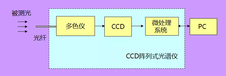 陣列掃描式光譜儀通常由多色儀、陣列式光電探測(cè)器、數(shù)據(jù)處理系統(tǒng)等幾部分組成,其中多色儀與單色儀最大的不同在于沒有機(jī)械運(yùn)動(dòng)部件,保證了儀器長久運(yùn)行的穩(wěn)定性和測(cè)量重復(fù)性,在結(jié)構(gòu)上也可以設(shè)計(jì)得非常小巧緊湊。陣列探測(cè)器采用全光譜同步探測(cè)方式,具有檢測(cè)速度快、靈敏度高、光譜響應(yīng)寬、動(dòng)態(tài)范圍大、重復(fù)性好、分辨率高等特點(diǎn)。