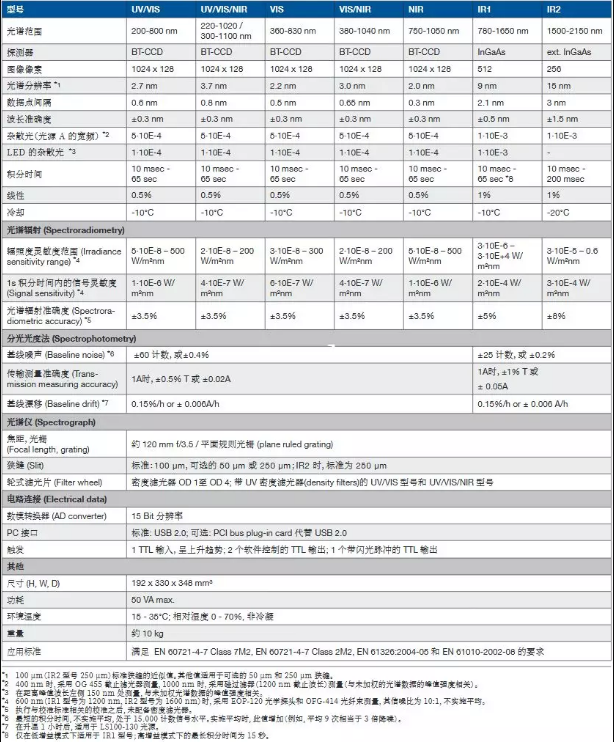 4. E+H光譜分析儀的性能參數(shù)