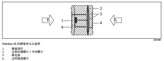 E+H電子差壓變送器PMD系列測(cè)量原理:在壓力 p1和p2作用下兩側(cè)的金屬過程隔離膜片 (4) 發(fā)生形變。填充液 (3) 將壓力傳輸至電阻橋路上 ( 半導(dǎo)體技術(shù) )。測(cè)量與差壓相關(guān)的橋路輸出電壓變化量,并進(jìn)行后續(xù)處理。