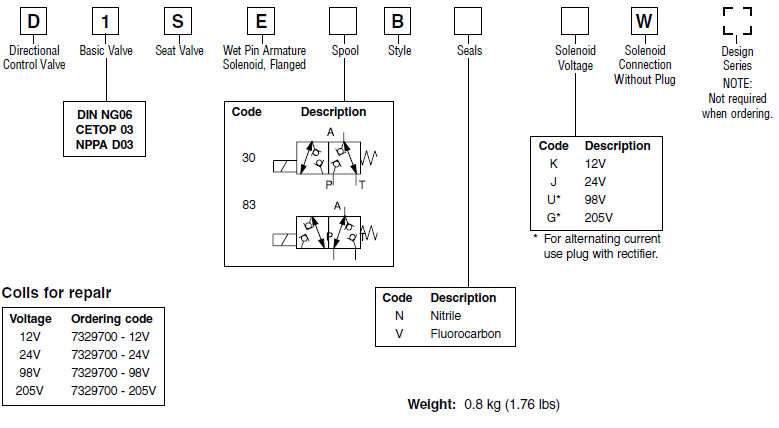 PARKER換向閥D1SE系列相關(guān)型號: