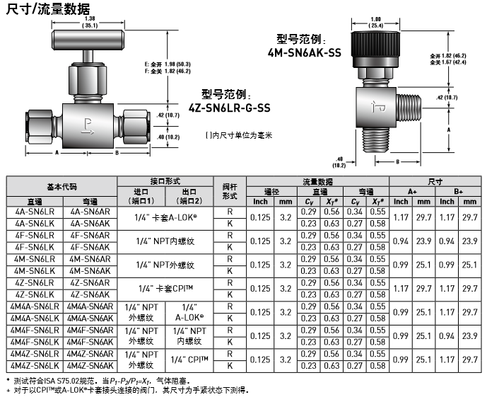 PARKER針閥SN6系列整體式閥帽設(shè)計(jì),316不銹鋼材質(zhì)閥體結(jié)構(gòu), 兩種閥桿類型可選: R型閥桿 – 全金屬,平頭設(shè)計(jì) K型閥桿 – PCTFE閥桿頭 ;