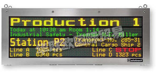 2.長距離信息顯示,過程數(shù)據(jù)可視化,簡單語言操作員指南-這些是SX502系列字母數(shù)字大尺寸顯示器的典型應用??梢蕴峁┳址叨葟?3到120 mm的各種類型,從緊湊的兩行式版本到大型電路板。技術完美和創(chuàng)新細節(jié)是SX502系列的特色。大尺寸顯示器提供單面或雙面顯示。帶有雙面顯示器的版本在正面和背面均具有LED矩陣,并且在兩側(cè)均顯示相同的信息。這些設備配備有PLC兼容功能輸入。它們允許激活設備功能,例如閃爍,消隱和降低LED亮度(白天/夜晚模式),而與數(shù)據(jù)接口上的信號無關。