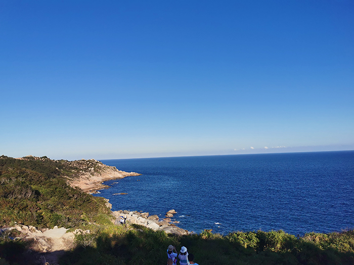 稍作休息后,下午3點(diǎn)多,我們游覽了觀(guān)景臺(tái)。這里三面環(huán)海,風(fēng)景如畫(huà)?;輺|的雙月灣,由兩片半月形灣畔形成,而這一壯闊美景,只有登頂大星山的觀(guān)景臺(tái)才能看到。駐足在雙月灣觀(guān)景臺(tái)的最前端,極目遠(yuǎn)眺,藍(lán)天、白云、大海,水天相接,令人心曠神怡。