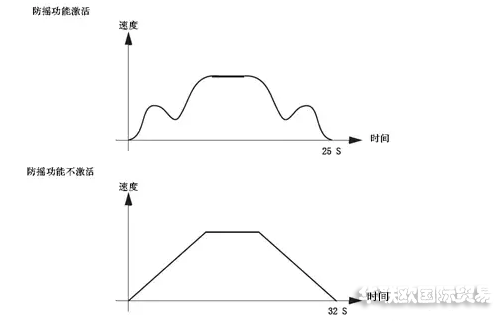 防搖未投入時:起動、停止、加速、減速晃動嚴重,工件擺動距離為±80cm左右,且需要超過相當長時間,工件才能靜止。吊鉤無法正常吊動。且無法在短時間內從一工位穩(wěn)定的移至另一工位。