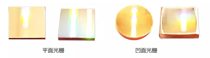 平面反射光柵是在平面基材上刻槽制成,只有色散功能,在光柵散射前后必須安裝準(zhǔn)直鏡和聚光鏡。如果光柵上存在周期性刻劃失誤,在衍射平面上就會(huì)出現(xiàn)鬼線。