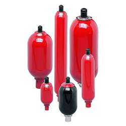 蓄能器在流體動(dòng)力系統(tǒng)中非常有用,它用來(lái)儲(chǔ)存能量、消除脈沖。它們可以用在液壓系統(tǒng)中,通過(guò)補(bǔ)充泵的流體,來(lái)減小流體泵的規(guī)格。這是通過(guò)在低需求階段,儲(chǔ)存泵里的能量完成的。他們可以作為波動(dòng)和脈沖的減緩和吸收器。他們可以緩沖捶擊,在液壓回路中減少由于動(dòng)力氣缸的突然啟動(dòng)或停止所引起的振動(dòng)。當(dāng)液體受溫度升高和下降的影響時(shí),蓄能器可以在液壓系統(tǒng)中用來(lái)穩(wěn)定壓力變化。他們可以分配受壓流體,例如潤(rùn)滑脂和潤(rùn)滑油。