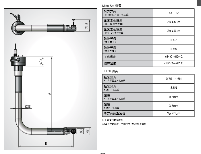 MARPOSS對刀臂產品參數: