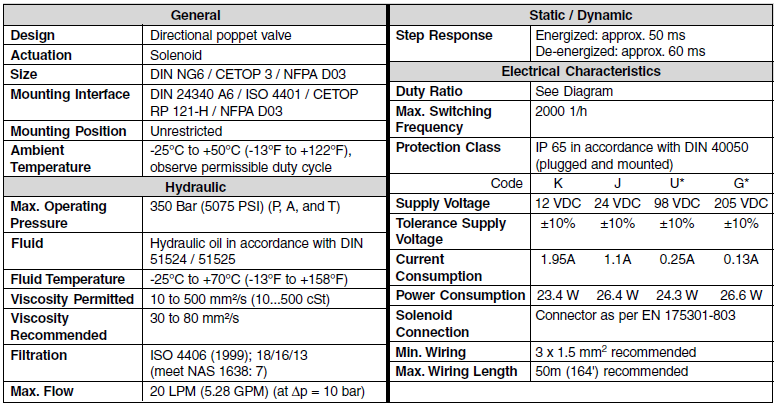PARKER換向閥D1SE系列可以與標(biāo)準(zhǔn)的DIN NG06,CETOP03和NFPA D03兼容。由于3/2路設(shè)計,端口A是無論以P連接或在水箱排出。該中立的立場(電磁閥未激活)通過復(fù)位彈簧自動拍攝。這個位置一直保持到電磁線圈通電。閥體具有全鋼結(jié)構(gòu)設(shè)計,重要的內(nèi)部功能零件硬化,閥芯和閥座耐磨。閥門的提升包括激活桿和電樞,當(dāng)電磁位于加壓油室的連接閥門時,提升設(shè)計就不會有微分區(qū)軸向操作方向(開啟,關(guān)閉)。因此,即使在壓力下,它的靜態(tài)壓力平衡可以使閥門在兩個流動方向下切換。